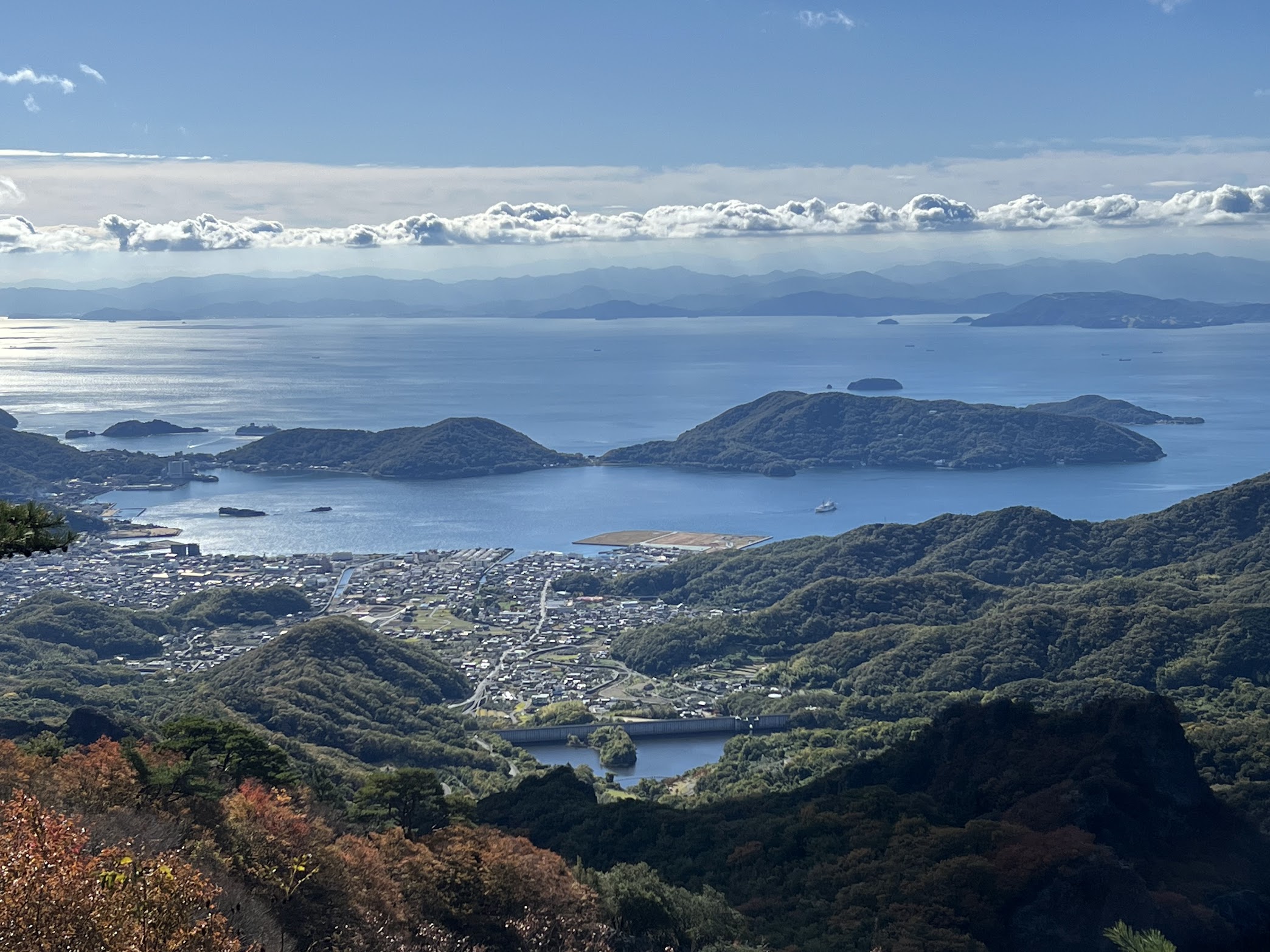 @瀬戸内海国立公園(小豆島) 総距離 7.4 km (4.6 miles) 標高差 298 m (978 feet) 料金 ¥1,500*(ロープウェイ片道) トレイルヘッド 寒霞渓ロープウェイ山頂 1 mi = 1.6 km, 1 ft = 0.3 m