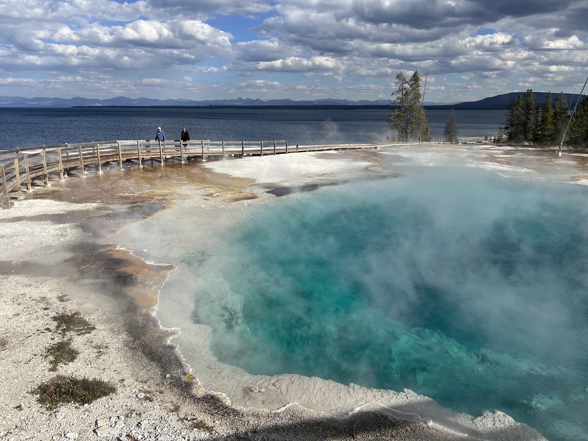 @Yellowstone National Park 総距離 1.0 mile 標高差 56 feet 料金 $35(入園料) トレイルヘッド West Thumb Geyser Baisin Trailhead 1 mi = 1.6 km, 1 ft =